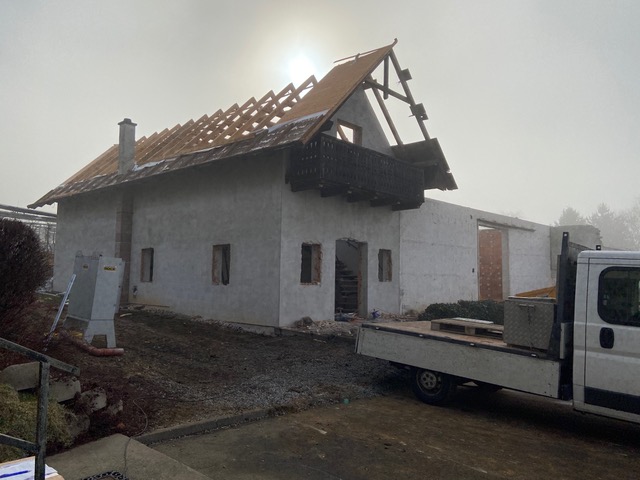 Es gibt Neuigkeiten aus Kaprun. Der Dachstuhl ist montiert und die Stiege ausgeschalt.